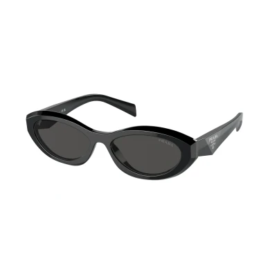 Prada Oval Womens Black Dark Grey PR26ZS Sunglasses feature a chic, oval frame that seamlessly blends contemporary style with classic sophistication. Crafted from high-quality acetate, these sunglasses offer both durability and comfort, ensuring they remain a staple in your wardrobe for years to come. The lenses provide excellent UV protection while distinctive Prada branding on the temples adds a touch of prestige, making these sunglasses not just a practical accessory, but a statement piece that complements any outfit with a touch of high-fashion flair.