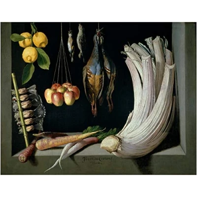 Paper reproduction of Juan Sánchez Cotán, 1602. Madrid, National Prado Museum. Image size: 68 x 53 cm Total sheet size: 42 x 33 cm. This reproduction was made on 170 gram Creator Silk paper. The picture reproduces the full work proportional to its original size and includes a white margin for easy framing.