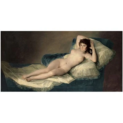 Paper reproduction of the work "La maja nuda", Francisco de Goya, 1820-1823. Madrid, National Prado Museum. Image size: 88 x 44 cm Total sheet size: 42 x 33 cm. This reproduction was made on 170 gram Creator Silk paper. The picture reproduces the full work proportional to its original size and includes a white margin for easy framing.