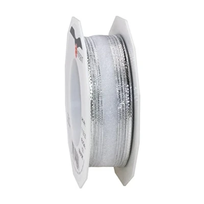 Organza ribbon with woven metallic lines with wired edges 20-m-Roll 25 mm width Available in many colours