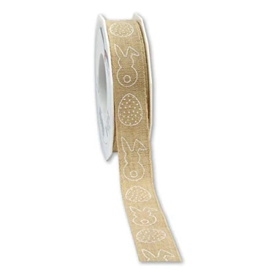 Linen look ribbon with easter printings Perfect for floral, craft or home decorations Thick natural looking ribbon 25 mm width, 15 m length Made in Germany