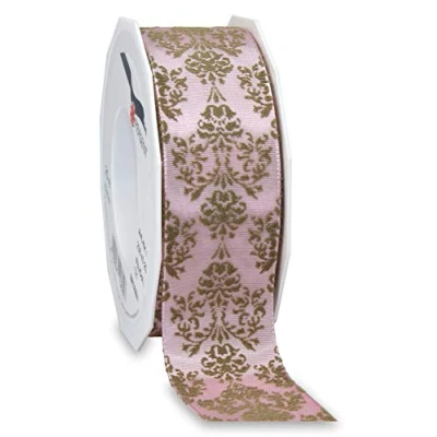 Präsent Brixen Wired & Printed Ribbon Rose Taupe 40 mm Width, 20 m Length