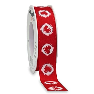 Printed Taffeta with hearts in stitched-look Unwired - perfect for packaging, hairbows, floral and crafts. 20-m-Roll 25 mm width Available in many colours Made in Germany.