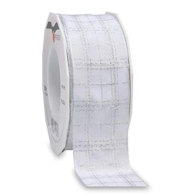 Präsent Falkenberg Wired Ribbon White Silver 40 mm Width, 20 m Length