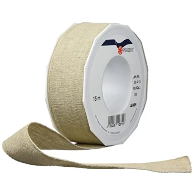 Jute-look and feeling ribbon perfect for decorating and sewing 15-m-Roll 40 mm width Available in many colours Made in Germany.