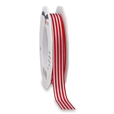 Präsent Lines Printed Satin Ribbon Red White 15 mm Width, 20 m Length