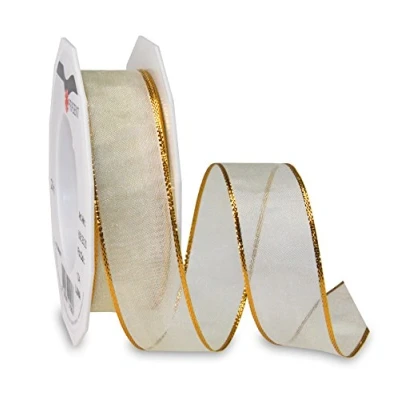 Organza ribbon with metal looking edges with wired edges 20-m-Roll 25 mm width Available in many colours