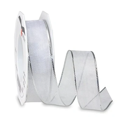 Organza ribbon with mettal looking edges with wired edges 20-m-Roll 25 mm width Available in many colours Packaging Tutorials on our homepage pattberg.com