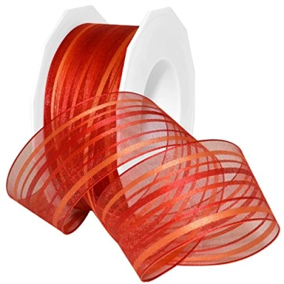 Organza ribbon with woven lines set in Unwired - perfect for packaging, hair bows, floral and crafts. 20-m-Roll 40 mm width Available in many colours Made in Germany.