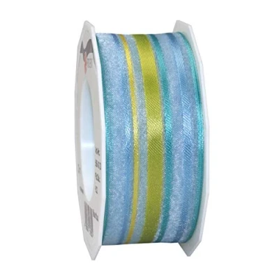 Präsent Mauritius Organza Ribbon Light Blue Lime 40 mm Width, 20 m Length