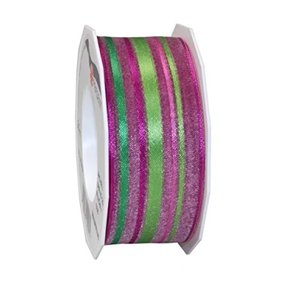 Präsent Mauritius Organza Ribbon Magenta Green 40 mm Width, 20 m Length
