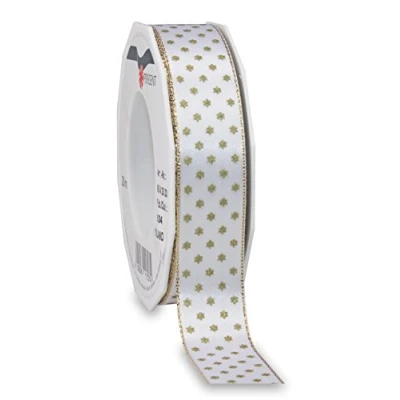 double face Satin with metallic edges and stars perfect for crafts and decoration 20-m-Roll 25 mm width Available in many colours Packaging Tutorials on our homepage pattberg.com