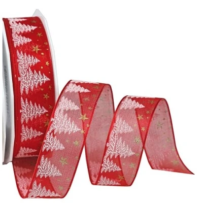 Printed organza with fir and star design with wired edges 20-m-Roll 25 mm width Available in many colours