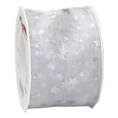 Printed Organza with mettalic Star pattern with wired edges 15-m-Roll 72 mm width Made in Germany. Packaging Tutorials on our homepage pattberg.com