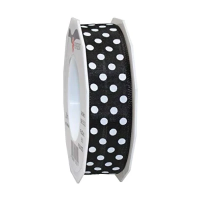 Präsent Polka Dots Wired & Printed Ribbon Black White 25 mm Width, 20 m Length