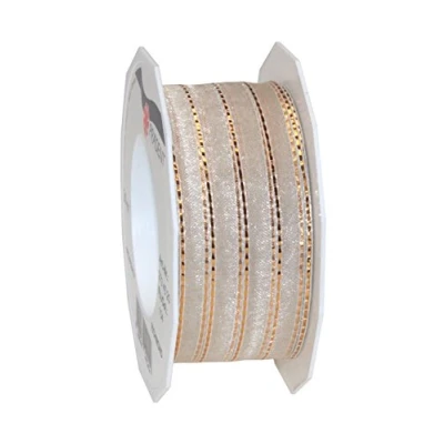 Organza ribbon with metallic woven lines with wired edges 20-m-Roll 40 mm width Made in Germany.