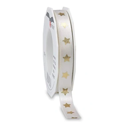 Präsent Starlet Printed Satin Ribbon Cream 15 mm Width, 20 m Length