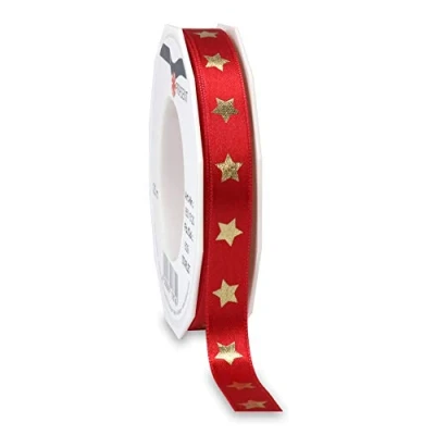 Präsent Starlet Printed Satin Ribbon Red 15 mm Width, 20 m Length