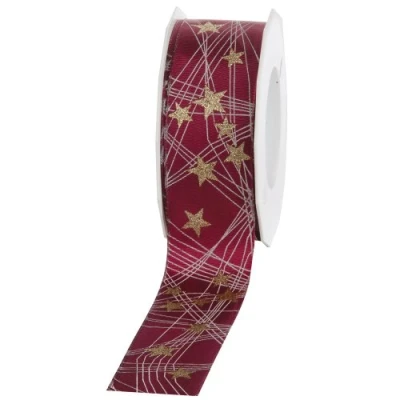 Präsent Stars Printed Ribbon Ruby Red 20 m Roll 40 mm width