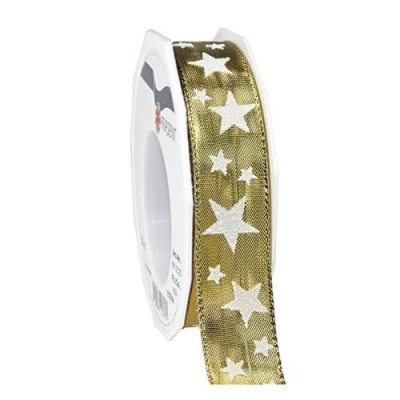 Präsent Stern Printed Ribbon Light Gold 20 m Roll 25 mm width