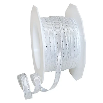 Präsent Stitches Gross Grain Ribbon White Silver 20 m Roll 7 mm width