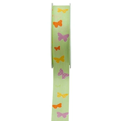 Printed Taffeta with butterfly and lines pattern Perfect for decoration and gift-wrapping 20-m-Roll 25 mm width Available in many colours Made in Germany.