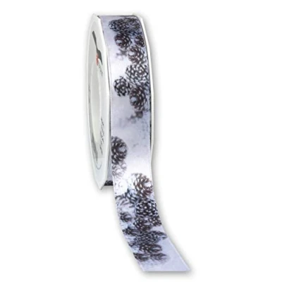 Präsent Tannenzapfen Printed Satin Ribbon Pinecone 25 mm Width, 20 m Length