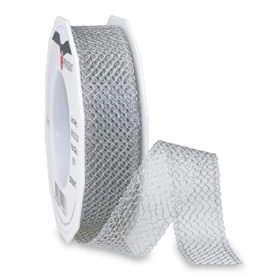 Präsent Zermatt Metallic tulle Ribbon Silver 20 m Roll 25 mm width