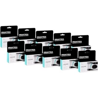 Praktica Single Use Disposable Camera Green 27 Shots Colour Film Pack of 10 for weddings, gatherings, travel & more