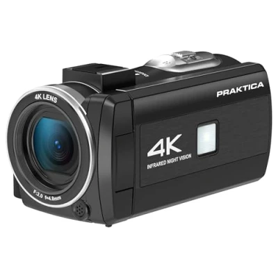 ✅ Praktica - Combining over 70 years of optical excellence with modern innovation. Trusted since 1949, with UK-based customer support for peace of mind. ✅ 4K Ultra HD Video Recording - Records 4K video with clear detail and vivid colour, suitable for vlogging, travel, events and everyday use. ✅ 21MP CMOS Image Sensor - High-resolution sensor for sharp photos and reliable video performance across a range of lighting conditions. ✅ 3″ IPS High-Definition Screen - IPS display with wide viewing angles for easy framing, playback and menu navigation. ✅ Time-lapse, loop and slow-motion recording modes - Includes time-lapse, loop recording and slow-motion functions for creative video capture. ✅ Cold shoe mount for external microphone or flash - Standard cold shoe supports compatible external microphones, LED lights or flash accessories. ✅ Infrared Remote Control & Night Vision - Allows remote operation and recording in low-light or dark environments using night vision. ✅ Expandable Storage Support - Compatible with Micro SD cards up to 256GB (card not included).
