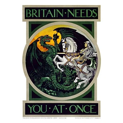 Prc UK WWI War Britain Needs You Recruitment Advert Large Wall Art Poster Print Thick Paper 18X24 Inch