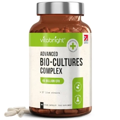 HIGH STRENGTH FORMULA - Delivers 45 billion CFU from seventeen diverse bacterial strains, including Lactobacillus acidophilus, Bifidobacterium and other cultures. Provides a full two-month supply at one capsule daily, and supports a balanced gut microbiota. PREBIOTIC POWER - Includes chicory inulin, which is a prebiotic that can nourish beneficial bacteria in the gut. Helps maintain a balanced gut environment and offers gentle, everyday digestive support. COMPREHENSIVE SUPPORT - Formulated for both men and women, this multi-strain bio cultures complex offers broad-spectrum microbiota support and is designed for normal digestion. It is specially developed to withstand stomach acid for effective delivery. WOMEN'S INTIMATE HEALTH - Contains bacterial strains naturally present in the female microbiota and provides tailored support for women. Combines pre- and bio cultures to help maintain natural balance and is suitable for everyday use. PREMIUM QUALITY - Vegan-friendly capsules free from dairy and gluten, and made in the UK to GMP standards. Contains no artificial additives and is convenient for travel, making it ideal for daily use to support general digestive comfort.