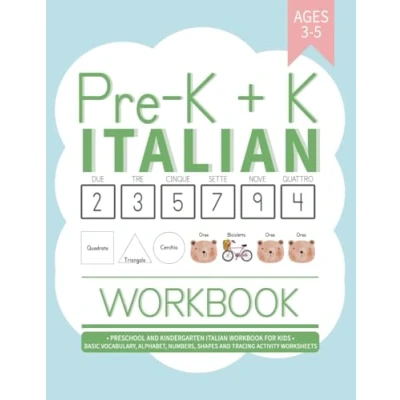 Pre K + Italian Workbook: Preschool and Kindergarten Workbook for Kids Ages 3 5 Basic Vocabulary, Alphabet, Numbers, Shapes Tracing Activity Worksheets (Learning Workbooks)