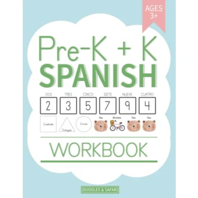 Pre K + Spanish Workbook: Preschool and Kindergarten Workbook for Kids Age 3 5 Basic Vocabulary, Alphabet, Numbers, Shapes, Verbs ... Worksheets (Learning Workbooks)