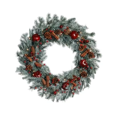 Pre-lit with 50 Warm White LEDs Built in 8 setting memory function control Timer Function: 6 hours on and 18 hours off Requires 3 x AABatteries (Not included) Diameter: 76 cm/30 Inch