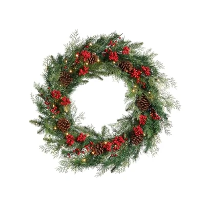 Pre Lit Berries & Pinecones Wreath
