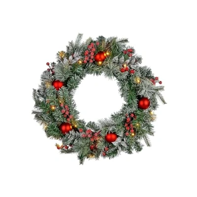 Pre Lit Decorated Frosted Wreath, 60 cm