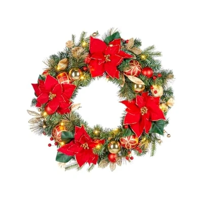Pre Lit Decorated Wreath, Red/Gold, 60 cm