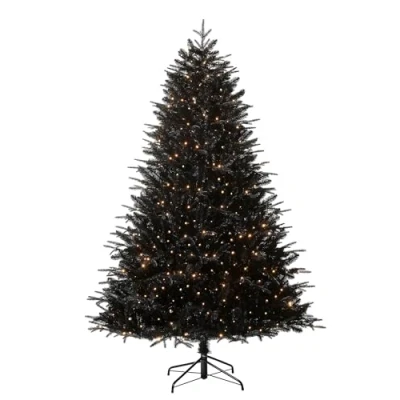 8ft mixed pine black Christmas tree with hinged construction 157cm wide with 3,185 PE/PVC tips for natural fullness 600 dual LEDs in warm white and cool white tones 10 lighting functions with memory controller and built-in timer Supplied in 3 sections with 5m lead for flexible placement
