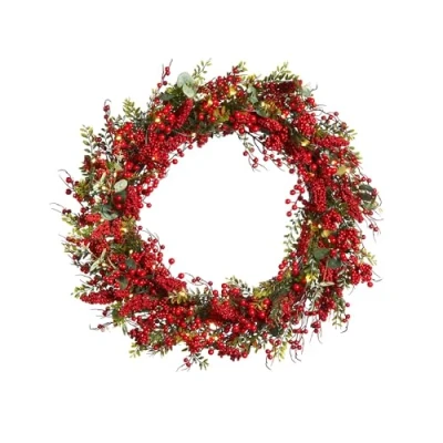 Pre Lit Red Berry Wreath