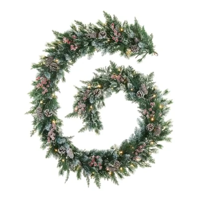 Pre Lit Snow Flocked Mixed Tip Garland