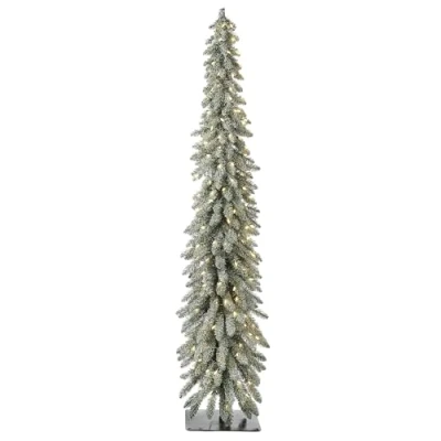 Pre Lit Snow Flocked Pencil Christmas Tree, 6.5 ft