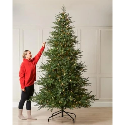 The tree stands 9 ft (274 cm) tall with a 173 cm diameter Crafted from 5108 mixed PE and PVC tips for a full and realistic appearance 800 warm white LEDs with eight lighting functions Includes slow glow, chasing and twinkle settings Supplied with 5 m cable and low-voltage transformer