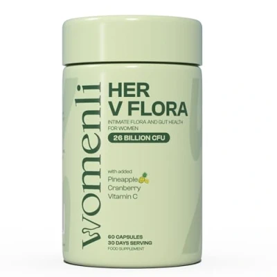 Prebiotics & Probiotics for Women 26 Billion CFU Flora with Cranberry, Vitamin C Pineapple Bio Cultures Women's Intimate Gut Health 60 Vegan Capsules Her V by Womenli (1)