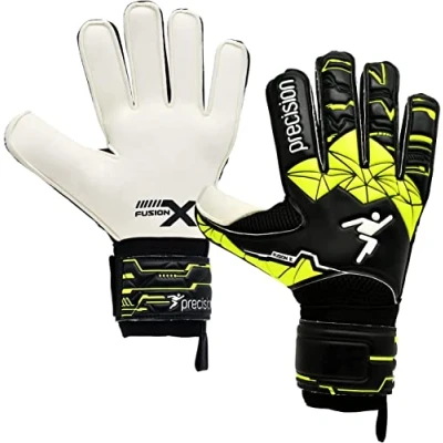 Precision Training Fusion X Flat Cut Finger Protect Football Kid's Goalkeeper Gloves, Black, 3