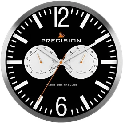 Precision Wall Clock with Temperature Control, Black/White/Silver
