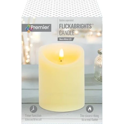 Premier 13cm FLICKABRIGHT Battery Operated Warm White LED Pillar Candle