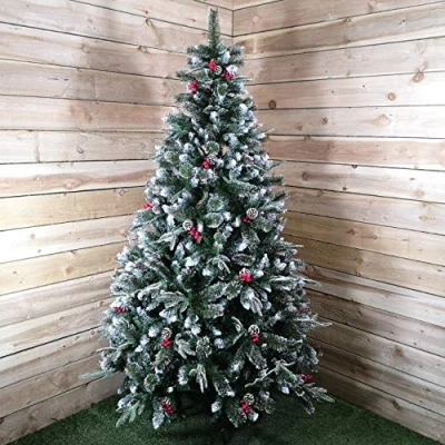2.1m new jersey Spruce Christmas Tree. PVC/Pe/Bristle/Berrie/Cones. With White ends for a snowy effect. Perfect for any christmas scene