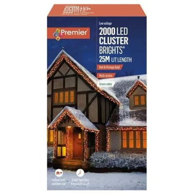 Premier 2000 LED 25m Christmas Outdoor Cluster Timer Lights Red & Vintage Gold