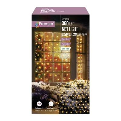 - Give your space a cosy festive glow with this Premier net light featuring warm white LEDs across a generous lighting area - Choose from 8 magical modes including static, waves, twinkle flash and more to suit every celebration - The memory function keeps your last setting, so your Christmas lights shine just how you like